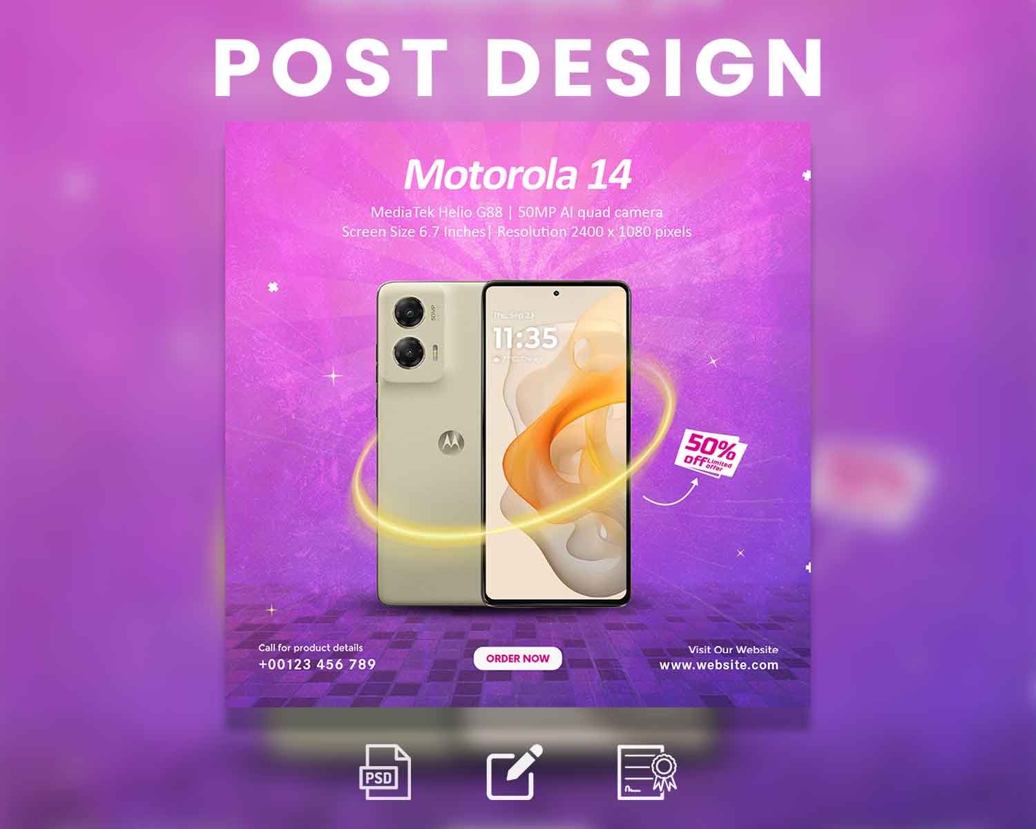 Get sleek and engaging social media posts for your gadgets. This design will captivate your audience for a week!